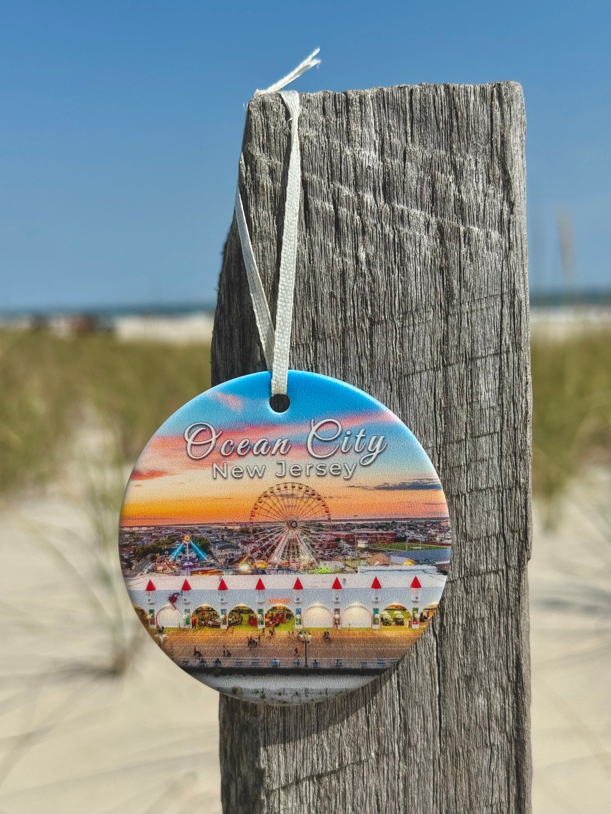 Celebrate your love for the shore with this 3-inch ceramic ornament, beautifully designed with double-sided imagery of Ocean City, New Jersey. Whether hung on your Christmas tree, it’s the perfect keepsake to remember sunny days and boardwalk nights.