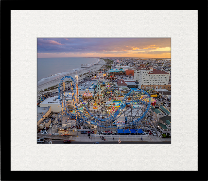 Elegant 11x14 glass frame featuring a matted 8x10 high-resolution photo of Ocean City, NJ. Available in sleek black or gray, this frame comes ready to hang for effortless display. Local drop-off available to save on shipping costs